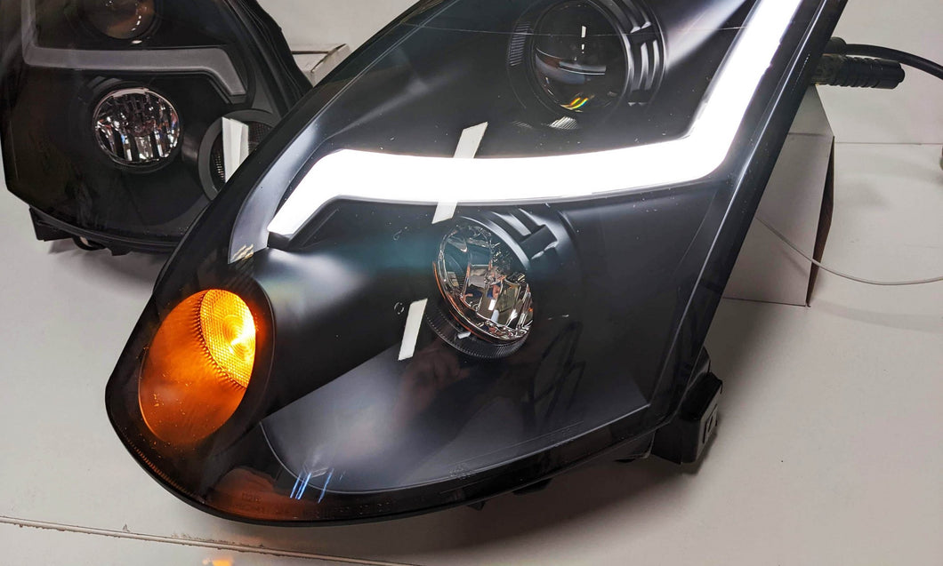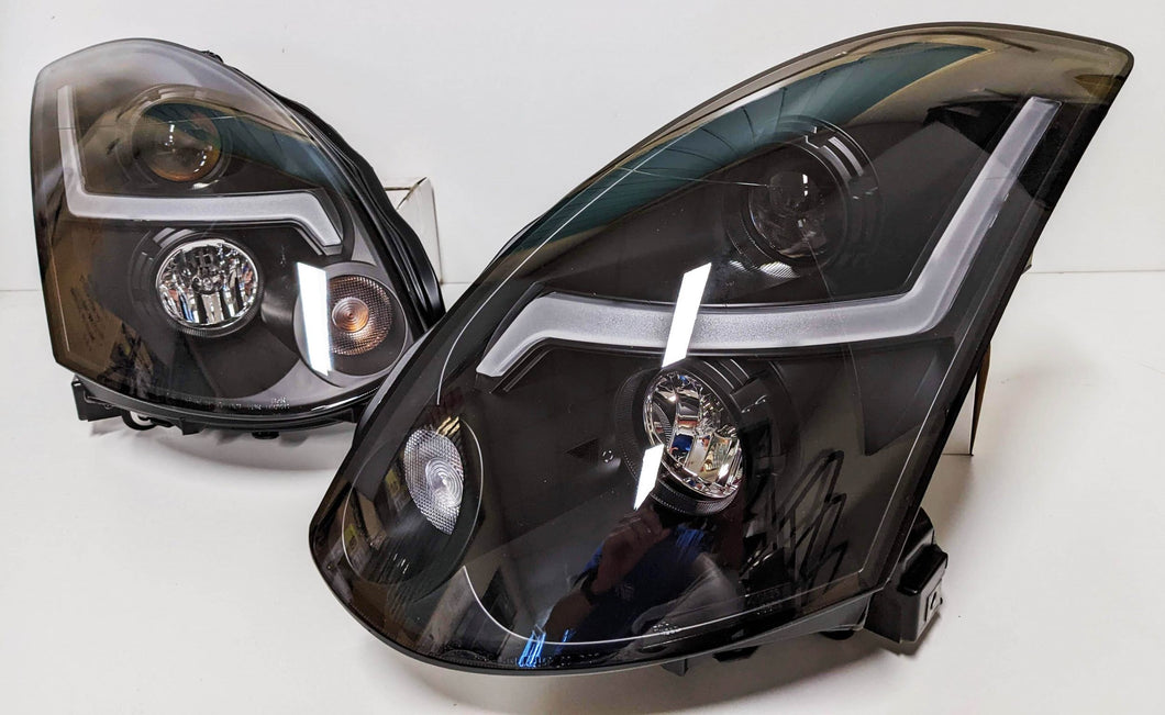 NISSAN SKYLINE 350GT INFINITI G35 V35 HEADLIGHTS BLACK 3D LED DRL PROJECTOR HEAD LIGHTS FOR 2001 - 2006