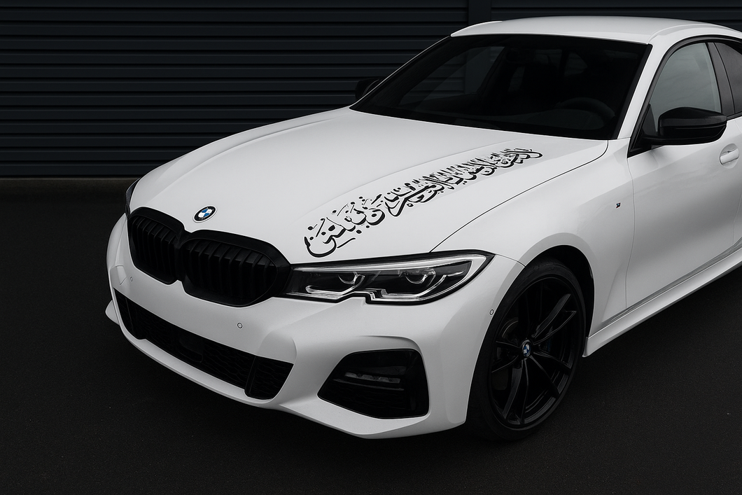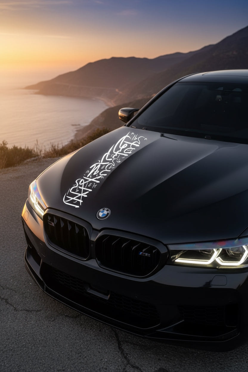 Add a touch of elegance and meaning to your ride with our custom Arabic calligraphy stickers — perfect for car bonnets or windows.
